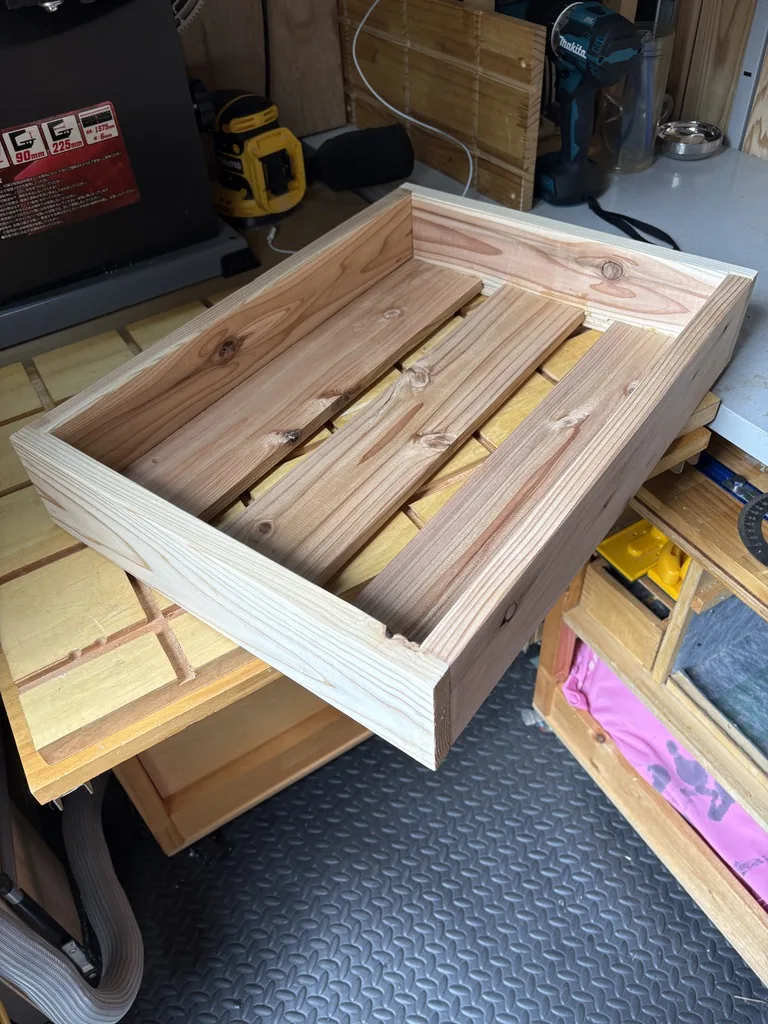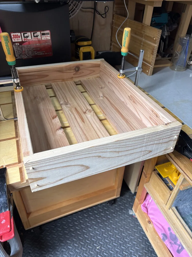 道具箱や野菜箱を作るのに金属釘を使わず、組み継ぎ・ボンドと木の釘で仕上げてみました